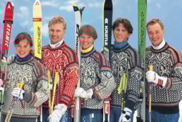 Dale Fabrikker becomes the Norwegian Ski Federation’s official supplier of gear for the Winter Olympics and the World Ski Championships. In order to boost yarn sales, the various outfits are made available to the public by way of knitting patterns.