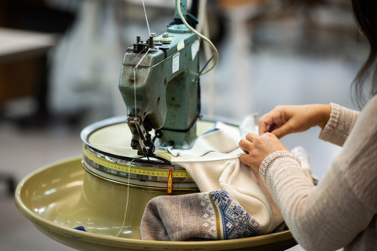 Our highly skilled staff in our Finishing Room are invaluable in the development of new and continuously improved products. They also take part in stitching knitted panels, zippers and buttons into finished garments. Being a company with high standards and premium quality at all stages, our colleagues in the Finishing Room are a key asset.